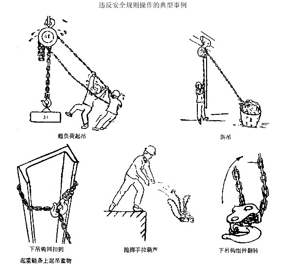 5、吊掛葫蘆的吊裝繩、吊掛點必須穩(wěn)固可靠,掛葫蘆時要掛穩(wěn)掛牢,防止起吊后發(fā)生事故。