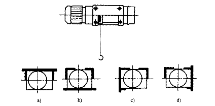 鋼絲繩電動葫蘆型式有很多種,包括固定式、單軌小車式、雙梁葫蘆小車式、單主梁角形葫蘆小車式。固定式又可以分為上方固定式(a)、下方固定式(b)、左方固定式(C)和右方固定式(d)。如下圖所示: