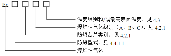 防爆標志應符合GB3836.1或GB12476.1的規(guī)定,防爆標志采用下述方式: