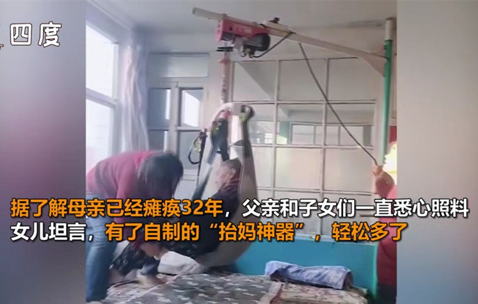 今日河北保定一則新聞刷新了朋友圈,“父親子女照顧癱瘓母親32年,自制“抬媽神器””,據(jù)悉,母親已癱瘓32年,子女與父親一直悉心照顧。一時(shí)間網(wǎng)友被子女的孝順?biāo)袆?dòng),更被其家人的不離不棄所感動(dòng)。