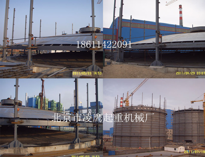 群吊電動(dòng)葫蘆群控倒裝提升技術(shù)在大型儲(chǔ)罐施工運(yùn)用中應(yīng)保證電動(dòng)葫蘆的同步起升:沒提升1/3板高左右時(shí),應(yīng)停止提升,檢查所有葫蘆提升是否同步,上升受力是否均勻。無不同步及受力不均等情況,方可繼續(xù)提升。如果出現(xiàn)起升不同步、受力不均狀況,則應(yīng)分別單獨(dú)調(diào)整滯后葫蘆,使其與其他葫蘆處于同等高度、同樣受力狀態(tài),以避免發(fā)生意外。調(diào)整好后即可再次同時(shí)提升,直至完成一帶板的提升。
