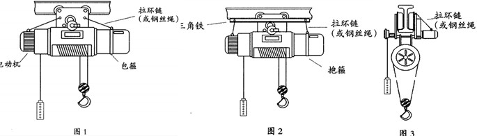 2、捆綁電動(dòng)機(jī)、減速箱的第二種方法:在小車滑輪的夾板上焊牢角鐵,長度根據(jù)電動(dòng)葫蘆的大小確定,角鐵規(guī)格的大小則要根據(jù)電動(dòng)葫蘆的重量確定,要確保足夠的強(qiáng)度。捆綁電動(dòng)機(jī)和減速箱的方法同上,另一端固定在角鐵的兩端(見圖2)。