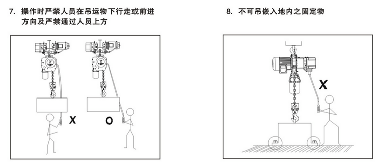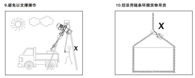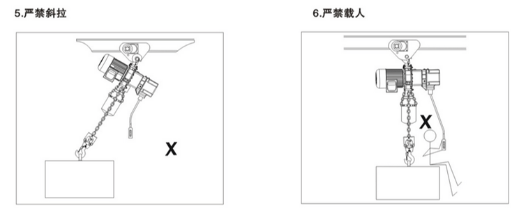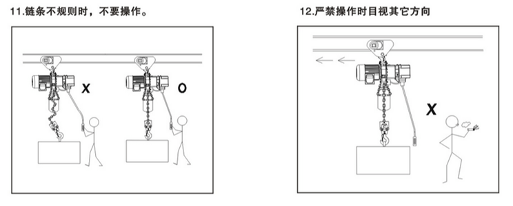 環(huán)鏈電動葫蘆在使用中有很多方面是需要注意的,凌鷹根據(jù)多年的行業(yè)經(jīng)驗總結(jié)了一些使用守則,下面通過一組圖片進(jìn)行解說。