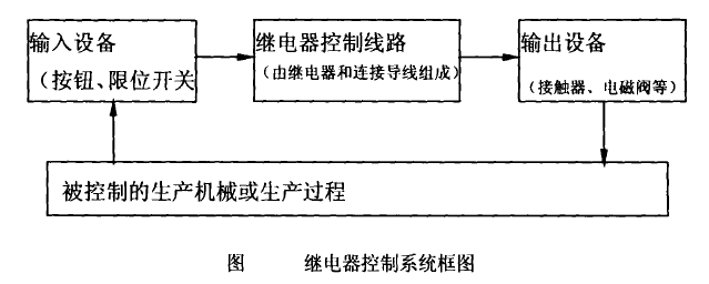 下圖中是一個繼電器控制系統(tǒng)。由繼電器、接觸器用導線連接起來以實現(xiàn)控制程序的,因此屬于接線程序控制系統(tǒng),其輸入對輸出的控制是通過接線程序來實現(xiàn)的,輸入設(shè)備(按鈕、行程開關(guān)、限位開關(guān)、傳感器等)用以向系統(tǒng)送入控制信號。輸出設(shè)備(接觸器、電磁閥等執(zhí)行元件)用以控制生產(chǎn)機械和生產(chǎn)過程中的各種被控對象(電動機、電爐、電磁閥們等)。