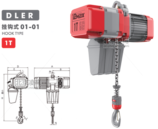 產品名稱:1噸DLER環(huán)鏈電動葫蘆掛鉤式
